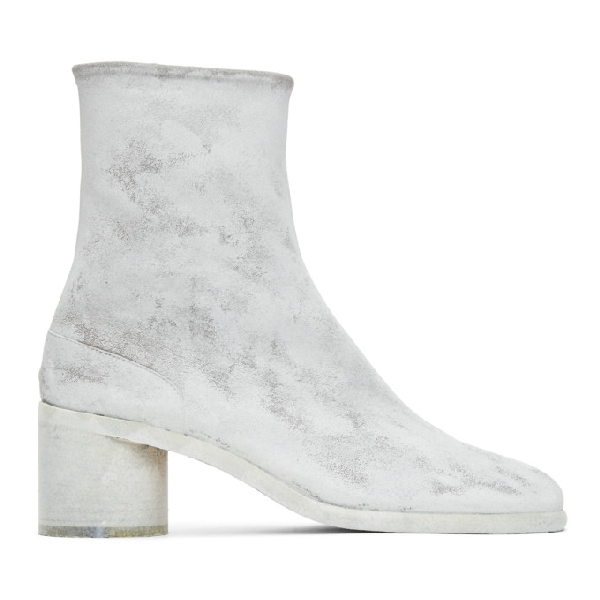 Maison martin margiela brown tall tabi boots with round heel (39) — fall 2003 | v a n ii t a s. Shop designer items by maison margiela online. New season maison margiela boots work perfectly for work or play, with key looks ranging from block heels, metallic detailing, even woven textiles and alpaca. Decorative mother of pearl buttons. This pair made of white leather comes with red and green heels with hologram. The french label isn't the only luxury house to offer its take on the translucent heel as of late. Tabi high heels ankle boots in black leather. Hey guys, in this video i will be unboxing a pair of tabi boots by maison margiela. Champagne beige leather tabi ankle boots from maison margiela featuring tabi toe, concealed side fastening, low block heel and leather sole. The shoe appeared at the very first margiela's collection in 1989 and since then has been repeated in any possible color and leather combination. Tabi boots is a signature footwear for maison margiela. Главная женское обувь ботинки низкие ботинки maison margiela grey low heel tabi boots. Maison martin margiela split toe patent leather and clear pvc tabi boots 38 newtop rated seller.